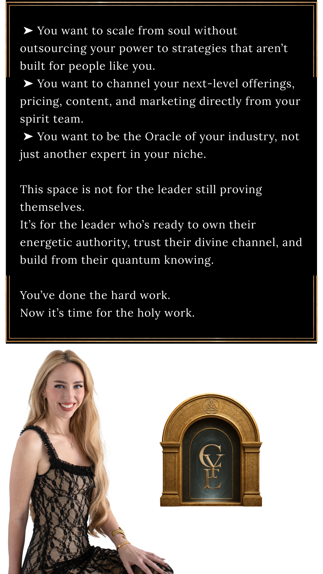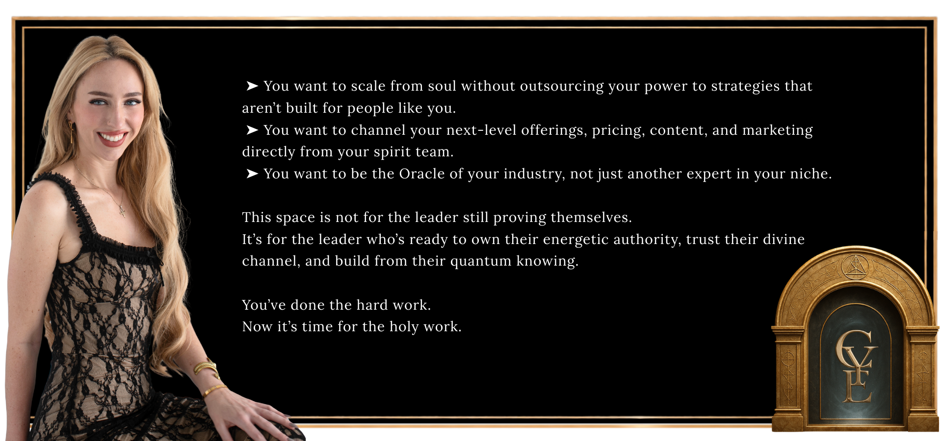 You’re here to channel a body of work so distinct, so divinely designed, that your soulmate clients feel it before they even read the sales page.