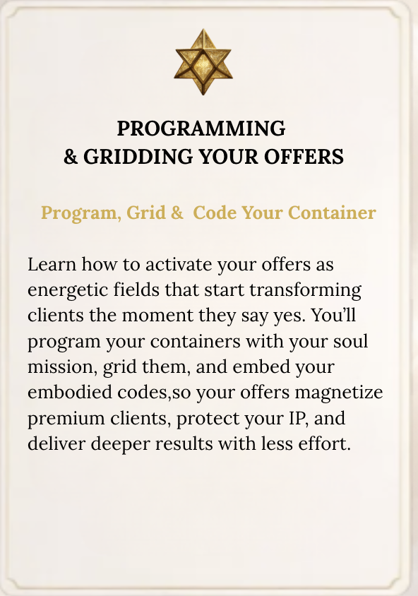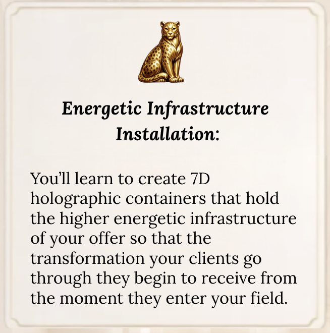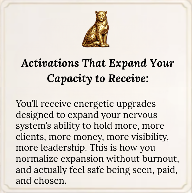 you’ll be initiated into the highest path for your business and finally build the energetic infrastructure to match the depth of your gifts.
