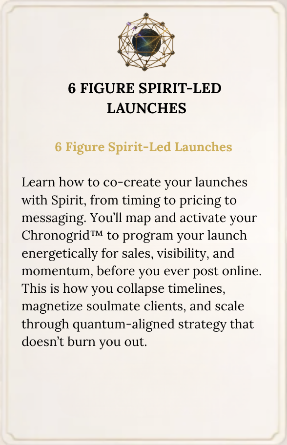 Rewire the way you launch, market, sell, and serve so your entire business is led by your spiritual team, grounded in strategy, and deeply aligned with your highest timeline.