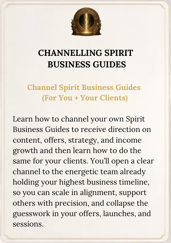 Anchor your business in clarity, conviction, and channelling no more trying to “figure it out,” you’ll receive direct instructions from your spiritual team.